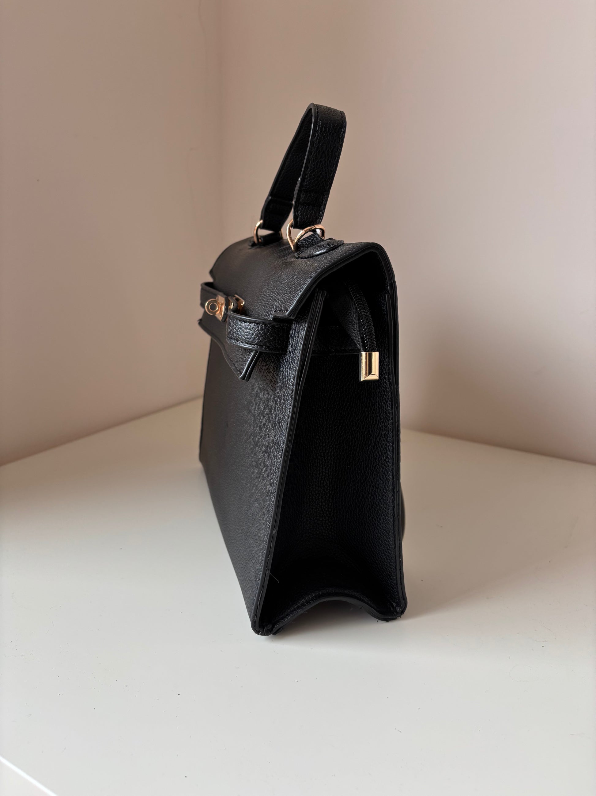 Borsa nera in eco-pelle è l'accessorio perfetto per chi cerca stile, praticità e sostenibilità. Il design classico con dettagli dorati la rende adatta sia per il giorno che per la sera, mentre la tracolla inclusa offre massima versatilità.