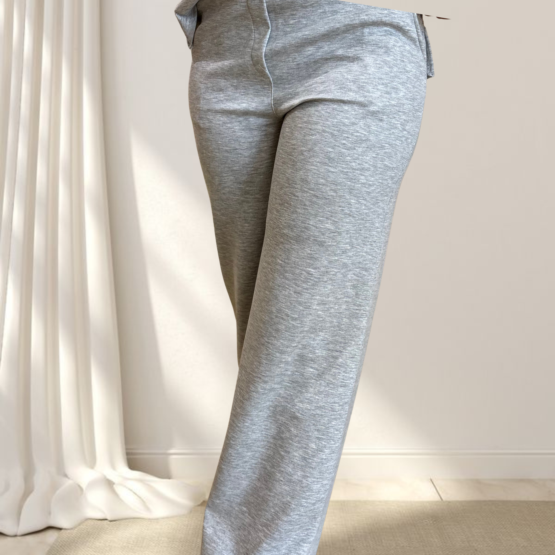 Il tessuto morbido e la vestibilità rilassata garantiscono libertà di movimento assoluta, mentre il design contemporaneo aggiunge un tocco di stile casual-chic. Un set versatile che ridefinisce il comfort con attitudine sportiva e moderna.