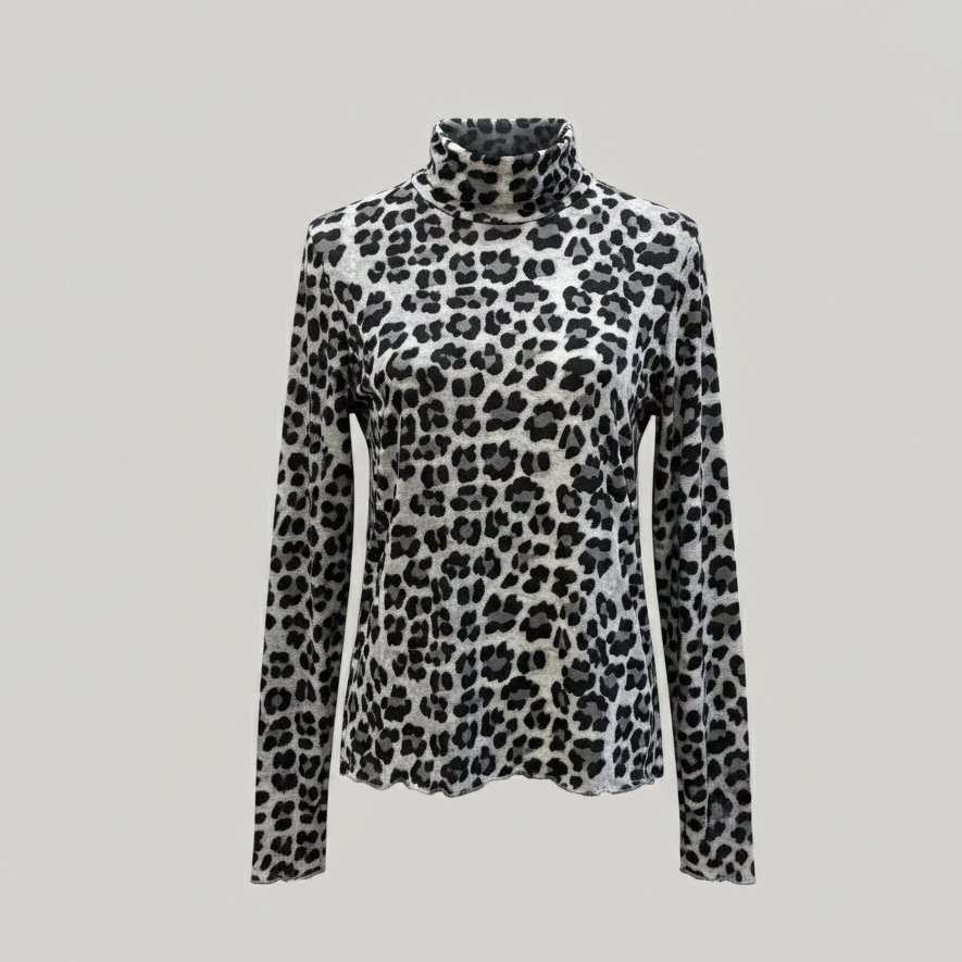Maglia a collo alto in misto cashmere con trama animalier. Un capo versatile che aggiunge un tocco di sofisticazione al tuo guardaroba.