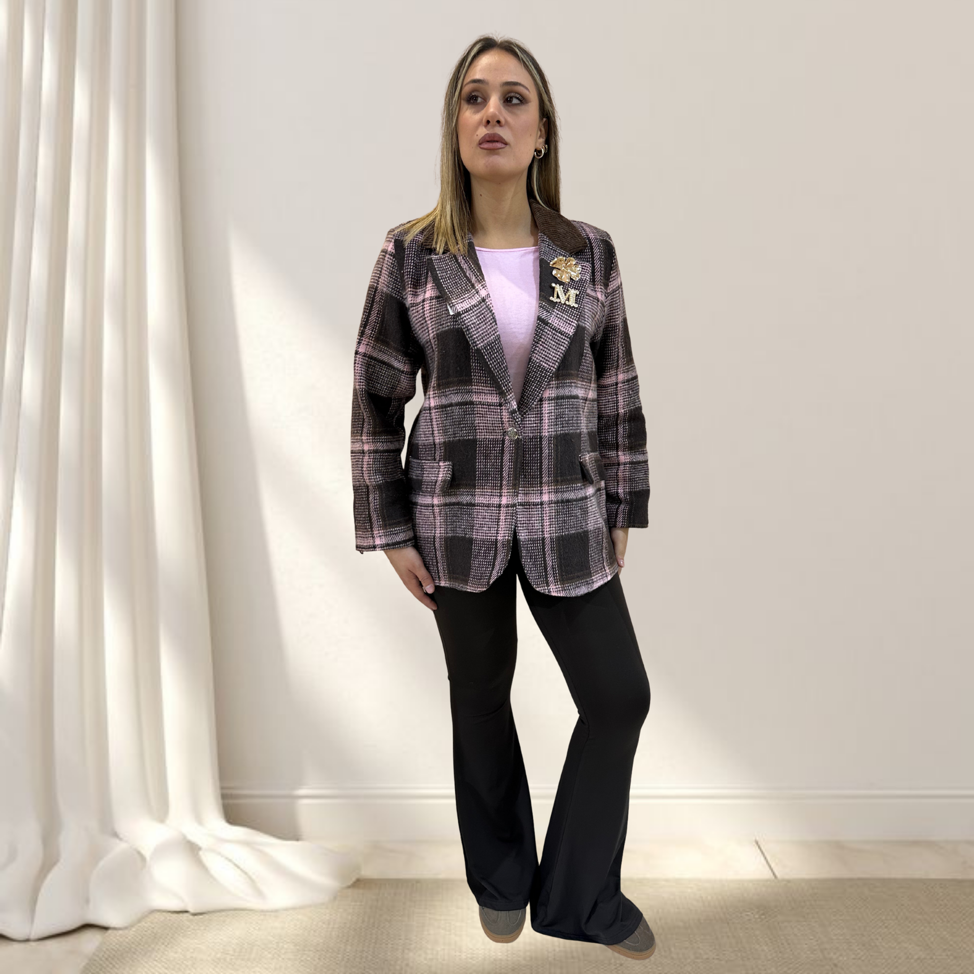 La giacca tartan con spille decorative che aggiunge carattere e stile al tuo guardaroba!