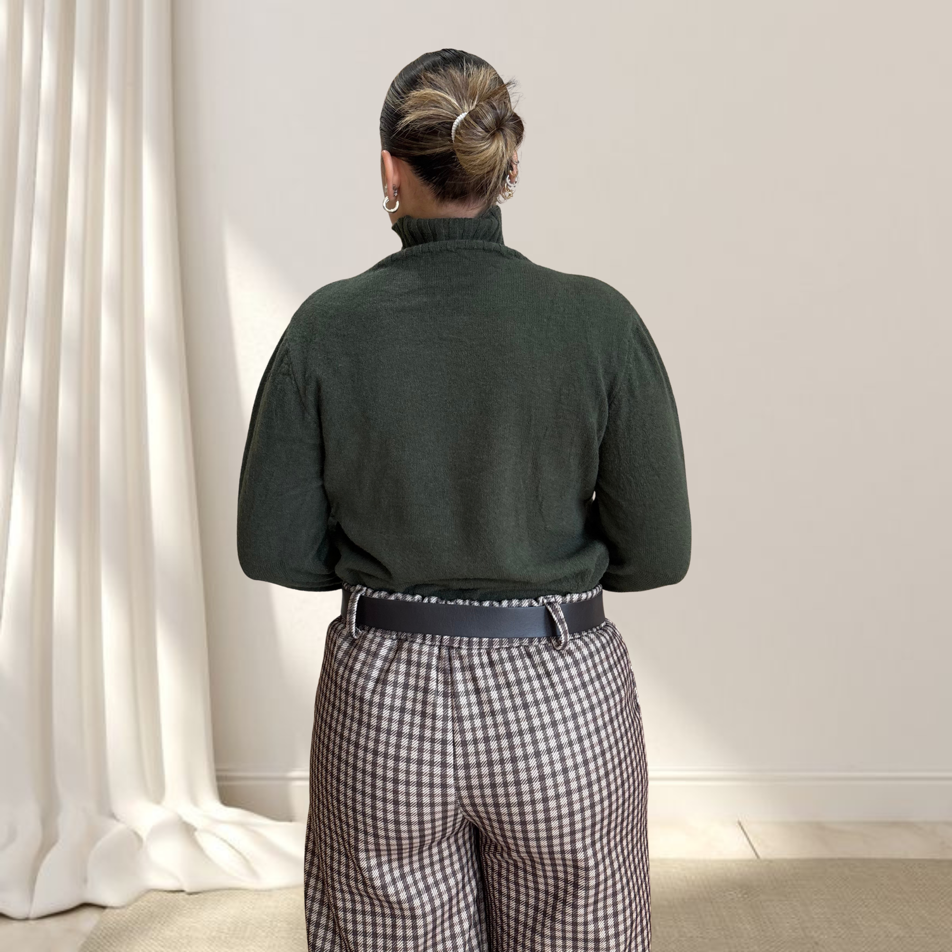 Abbinalo a jeans e stivaletti per un look casual-chic quotidiano, oppure indossalo sotto blazer con pantaloni sartoriali per l'ufficio. Perfetto anche con gonna midi e tacchi per un outfit elegante, o layered sotto cappotto per massimo calore e stile.