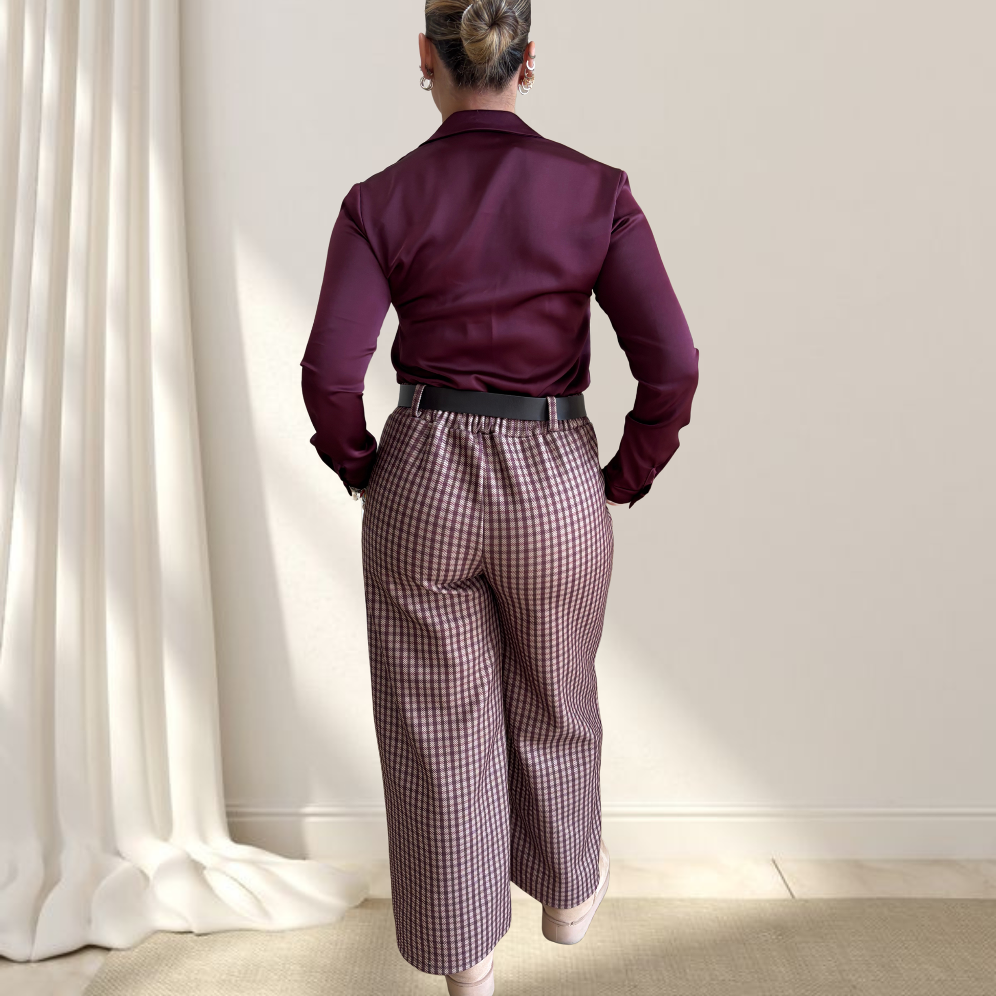 Questo pantalone a quadri donna ridefinisce l'eleganza british con un twist contemporaneo. Il motivo check distintivo crea un look sofisticato e di carattere, perfetto per chi cerca pantaloni quadri eleganti che uniscono tradizione e stile moderno con versatilità assoluta.